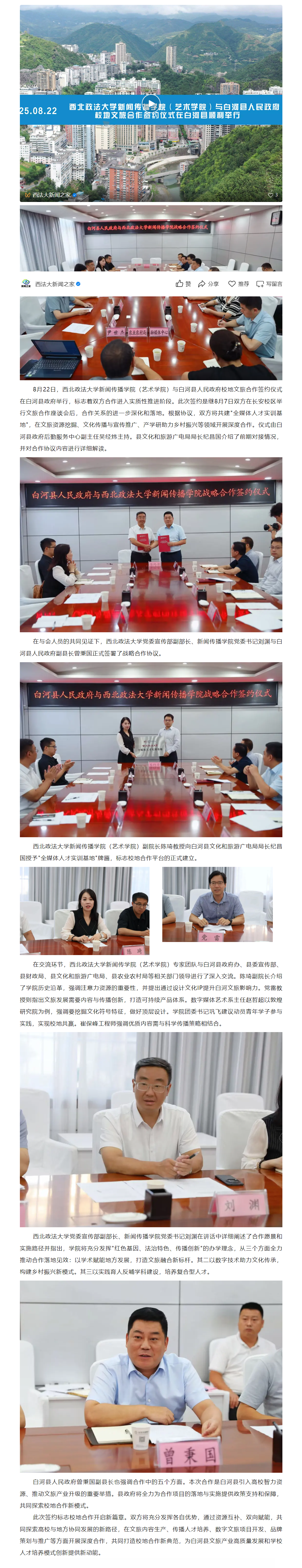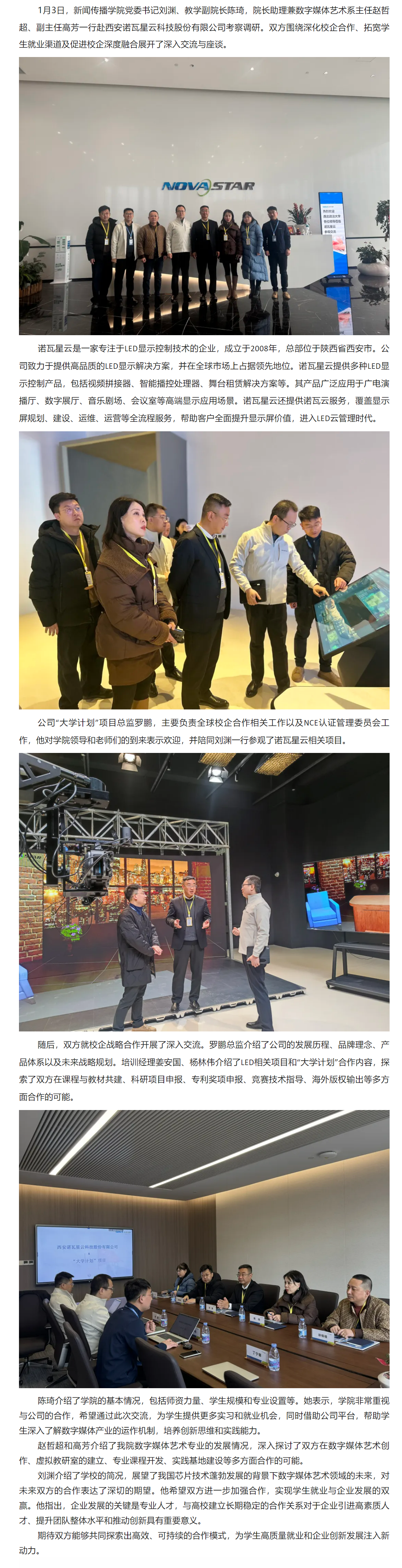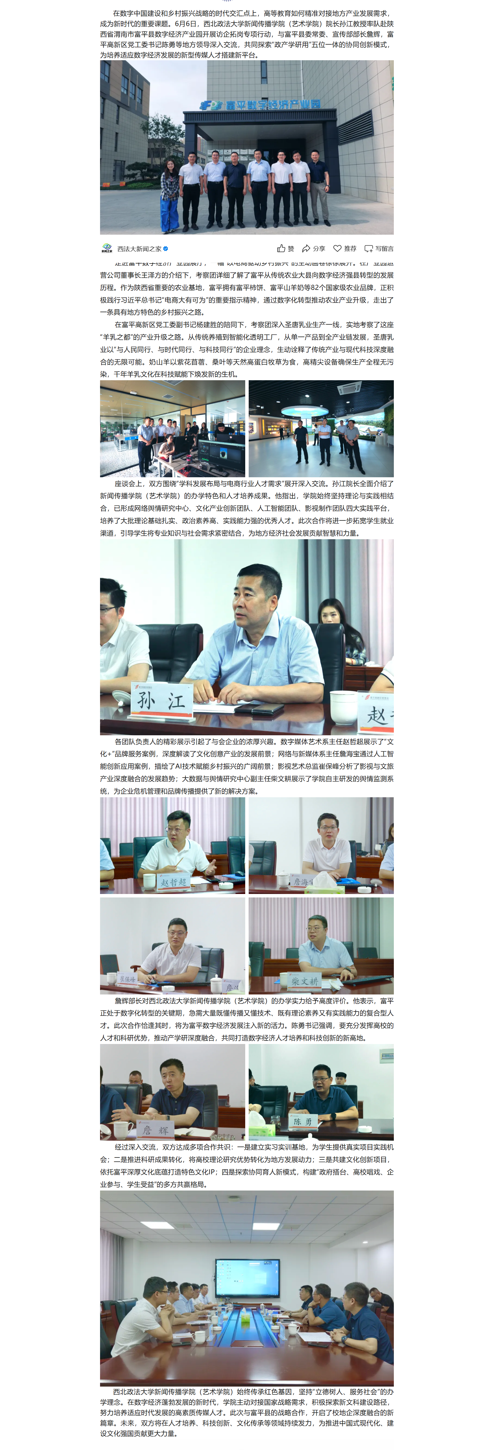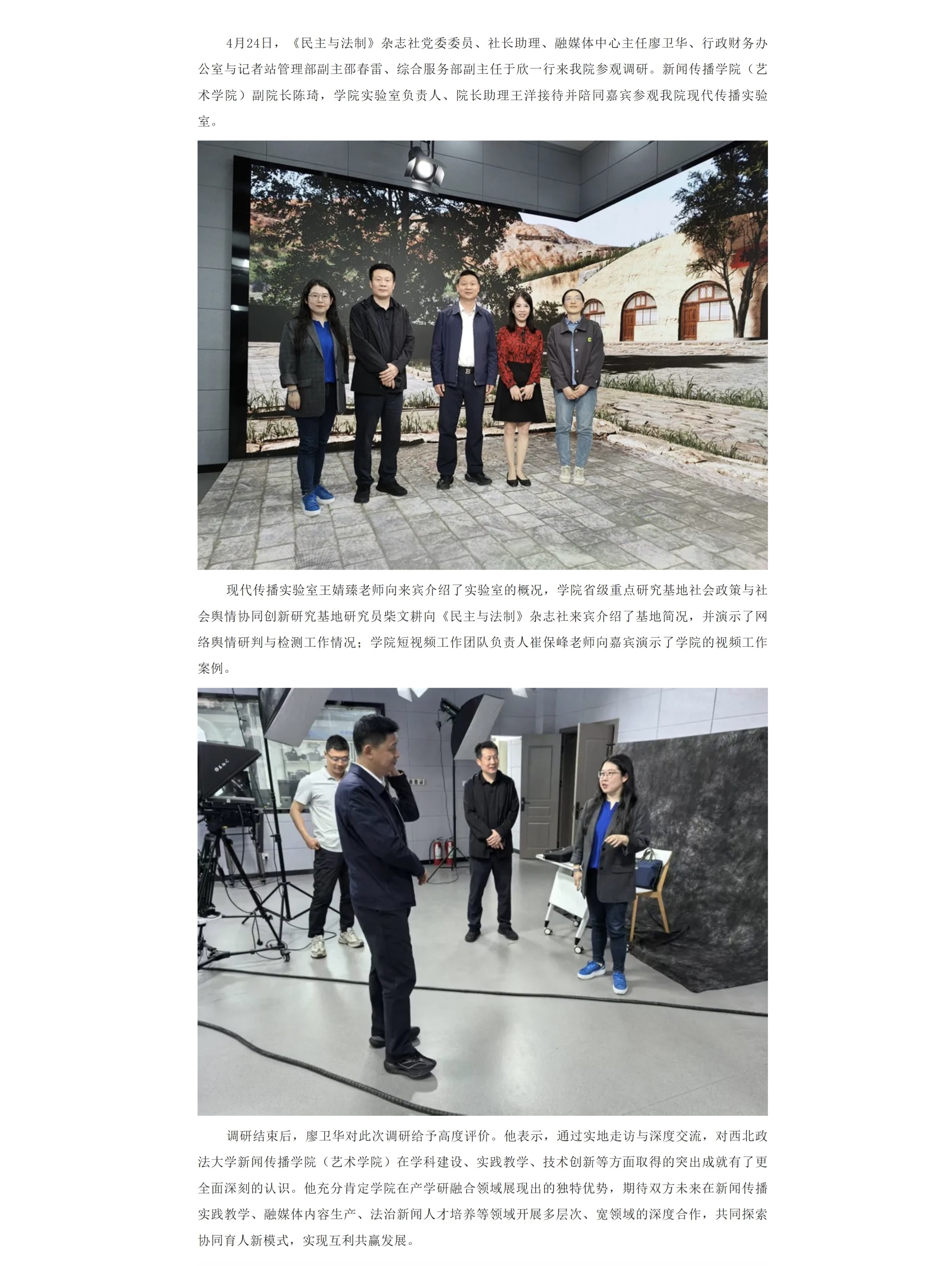 为深入贯彻落实党的二十届三中全会精神,加强协会与高校合作,培育高素质电影专业人才,12月11日,共建高水平电影人才培养机制座谈会在我校长安校区致知楼举行。陕西省文联党组成员、专职副主席蔺雨,陕西省电影家协会主席、西影集团总经理黄献松,我校党委副书记、纪委书记、监察专员刘志彬出席座谈会,陕西省电影家协会主席团成员、做爱视频 党政负责人及教师代表参加座谈会。 陕西省文联党组成员、专职副主席蔺雨对西法大新闻教育深厚的历史沿革背景表示赞赏。他说,以何微为代表的中国新闻教育奠基人创建了党的新闻理论,做出了重要学术贡献。西法大做爱视频 发展基础好,优势独特。希望学校加强与省电影家协会、省电视艺术家协会、省民间艺术家协会、省美术家协会等协会的合作,通过承办影评大赛、短视频大赛,举办学术论坛等活动,充分发挥高校与协会合作的平台优势,为电影人才成长创造新机遇,开辟更为多元的成长成才路径,展现青年电影人未来更多的可能性。\ 陕西省电影家协会主席、西影集团总经理黄献松表示,西法大电影相关专业很有特色。高校作为电影艺术研究的沃土与摇篮,承载着培育电影人才的使命,大学生不仅是电影消费的主体,更是电影行业未来重要的后备人才。当前电影行业发展迅速,需要青年一代新鲜血液的输入,助力电影行业高质量发展。希望通过此次座谈会,进一步加强与西法大的合作交流,充分协会与高校各自优势,建立电影研究基地,发挥高校智库作用,推动西部电影谱写新篇。 我校党委副书记、纪委书记、监察专员刘志彬表示,感谢省文联、省电影家协会对我校电影人才培养工作的重视。他说,培养电影人才是一项意义深远、久久为功的工程,需要多方齐心协力、共同努力。高校要加强与行业协会的沟通交流,开展密切合作,携手搭建多元化实习实践平台,共建电影人才培养新方式、新机制。高校教师要积极参与协会工作,在项目合作的过程中,充分发挥自身优势,为学生提供与行业专家交流学习的机会,提高学生在创意策划、拍摄制作等方面的电影创作能力。希望协会与高校携手,通过务实高效合作,形成一批高质量成果。 做爱视频 院长、教授、博士生导师孙江介绍了我校新闻教育历史沿革、教学科研和人才培养情况。学院重视电影相关学科建设,拥有戏剧与影视艺术专业硕士学位授予权,广播电视编导和戏剧影视文学等4个专业先后获批为陕西省一流专业建设项目。学院培养了一批优秀的电影从业者。数字媒体艺术系主任赵哲超、戏剧影视文学系主任曾静蓉、广播电视编导系主任李璐分别介绍了电影相关专业学生培养情况,展示出学院电影人才培养的独特优势。 与会嘉宾在交流中表示,要共同致力于培养具备专业技能、创新思维与艺术素养,能适应电影行业发展需要的高质量电影人才,要立足于人工智能赋能,利用新科技手段提升电影人才专业水平,要落实协会、企业与高校合作内容,为学生提供更多实习就业机会,要充分发挥各自资源优势,加强交流合作实现互利共赢。 座谈会由做爱视频 党委书记刘渊主持。陕西省电影家协会副主席、陕西旅游集团影视文化有限公司总经理张珂珂,陕西省电影家协会副主席、西安博纳影院管理有限公司总经理李军练,陕西省电影家协会秘书长王珍,陕西省电影家协会副秘书长、西影集团艺管中心主任沈亚荣,校纪委机关综合室主任燕楠,做爱视频 副院长、教授陈琦,陕西省电影家协会副主席、做爱视频 教授党雷,戏剧影视文学系副主任杨晓,广播电视编导系副主任郭梅,数字媒体艺术系副主任高芳参加座谈会。会后,与会嘉宾参观了我校校史馆和现代传播实验中心。