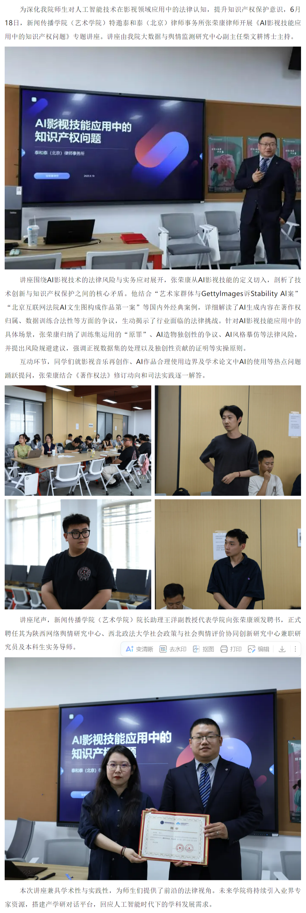 5月17日,做爱视频 精心筹备两场专题培训,为全国首个以“法治营商环境”为主题的中亚深度科研团队新闻采编成员“充电蓄能”,提升新闻采写与短视频制作能力。 16点至18点,崔梁凡老师带来新闻报道写作理论实务培训。培训中,他从新闻选题策划、采访技巧、写作规范等多方面展开讲解,结合实际案例,深入浅出地剖析新闻报道的要点与难点,帮助团队成员掌握挖掘新闻价值、撰写优质稿件的方法。 19点至21点,崔保峰老师的短视频拍摄与制作实务培训接续进行。他围绕短视频策划、拍摄手法、剪辑技巧等内容,分享实用经验,让团队成员对短视频全流程制作有了更清晰的认知。 据悉,该科研团队即将奔赴哈萨克斯坦、乌兹别克斯坦、吉尔吉斯斯坦等国,开展为期两周的实地调研。此次培训内容与团队即将开展的调研工作紧密结合,旨在助力团队成员在调研过程中,能够更好地记录、传播 “法治营商环境” 领域的中亚故事,为科研成果的宣传推广奠定坚实基础。