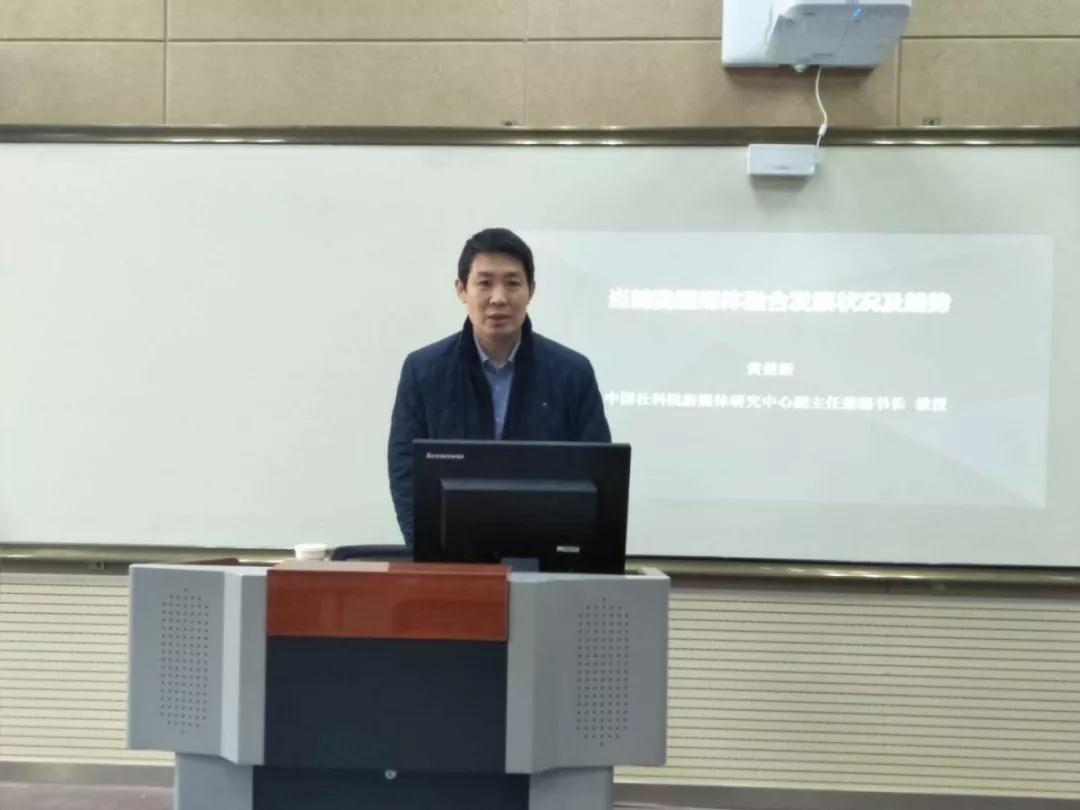 11月29日上午9点,在郭淼老师主持下,录播教室举办了一场有关媒体融合的满满“干货”的讲座,中国社科院新媒体研究中心副主任兼秘书长黄楚新教授,结合了多年研究与自身经验,在两个小时的讲座中,通过引用数据、分析案例,深入浅出为学生们梳理了我国媒体融合发展状况及趋势。