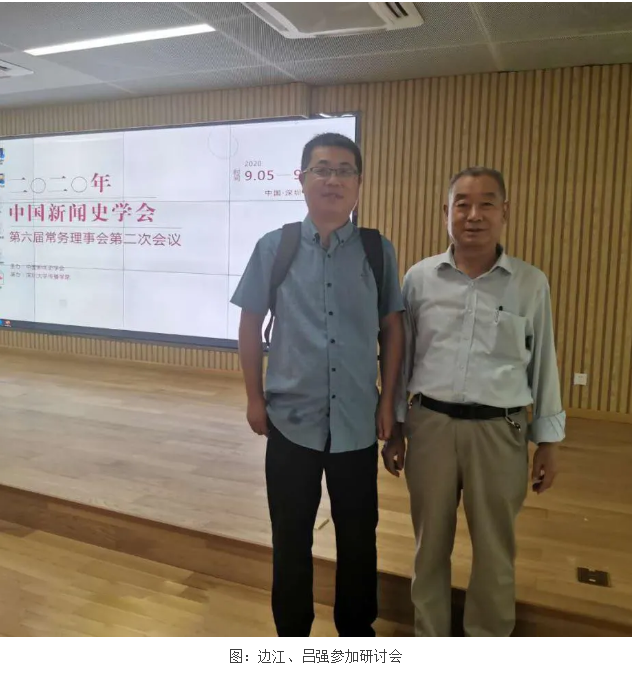 9月5日至9月6日,2020年中国新闻史学会常务理事会暨新闻传播专题史研讨会在深圳大学召开。本次会议由中国新闻史学会主办,深圳大学传播学院和深圳大学传媒与文化发展研究中心承办。我院兼职教授边江、青年教师吕强应邀参加此次研讨会,并分别以提交的论文《红中社西安分社:新华社第一个分社》和《马克思主义新闻观教育的228发轫与传承:党在延安时期的新闻教育》为主题进行了与会发言。
