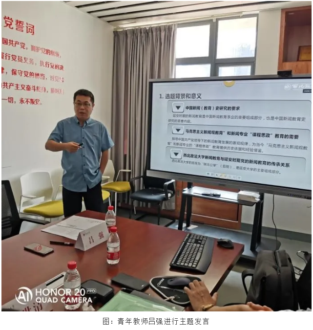 吕强老师则以党在延安时期的新闻教育为主题进行发言,并认为延安时期的新闻教育是中国新闻教育事业的重要组成部分,也是中国新闻教育史研究的重要内容。它是在党的新闻事业发展、马克思主义传播、党的高等教育建设初创以及由报人、记者参与新闻教育等历史背景下产生的。党在延安时期的新闻教育经历了由短期培训向正规化教育发展的历史过程,而这一过程的落实,则具体体现在由中国女子大学、鲁迅艺术学院新闻课流变为李敷仁开办的延安大学新闻班。回溯延安时期党的新闻教育,不仅能够传承马克思主义作为理论指导、理论结合实践等党的新闻教育的优良传统,而且还可以为当今“马克思新闻观教育”和新闻“专业思政”课程建设提供历史依据和经验借鉴,彰显其当代价值。