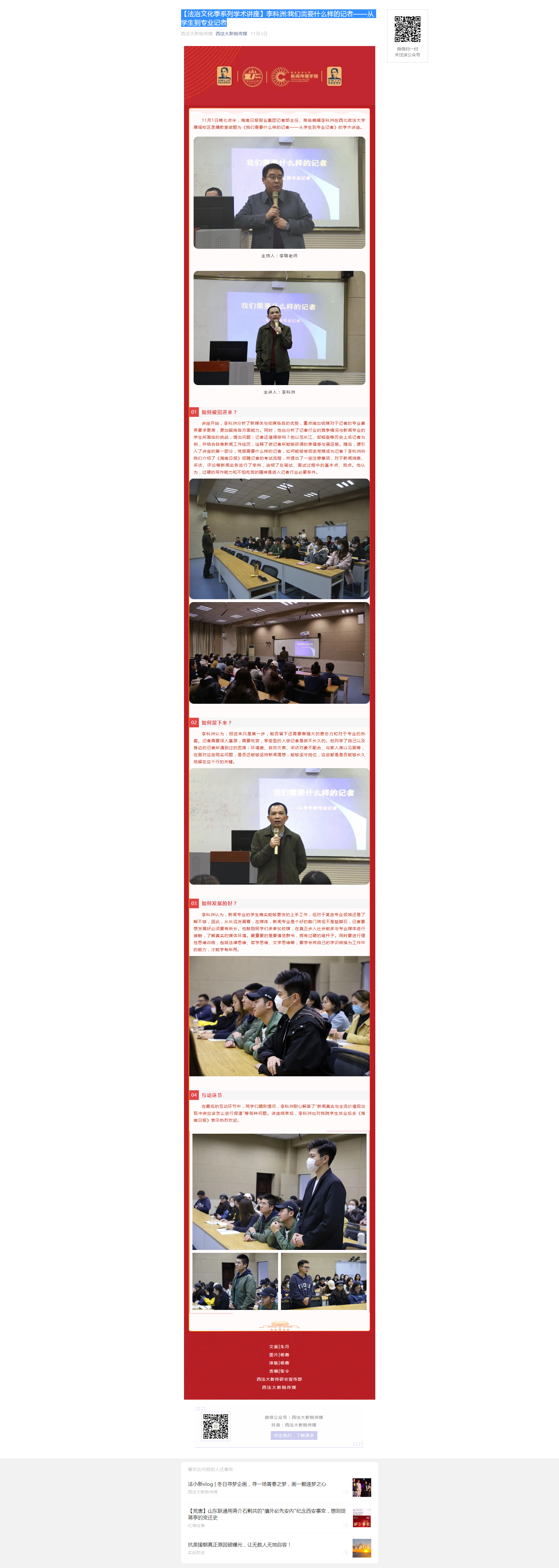 【法治文化季系列学术讲座】李科洲:我们需要什么样的记者——从学生到专业记者