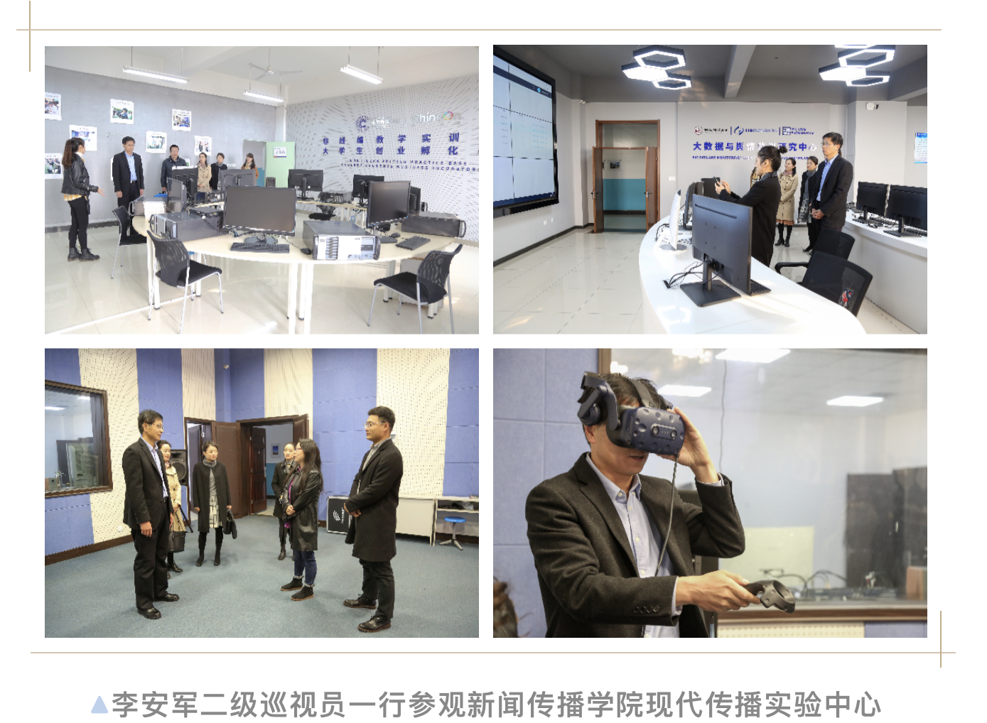 做爱视频 现代传播实验中心是“陕西省级实验教学示范中心”。李安军二级巡视员一行先后参观了电子采编室、新闻摄影实验室、中广上扬非线性编辑室、演播室、录音室、融媒体指指挥中心、新媒体创意设计实验室等9个专业实验室,我院王婧臻老师分别对各个专业实验室进行了详细介绍。