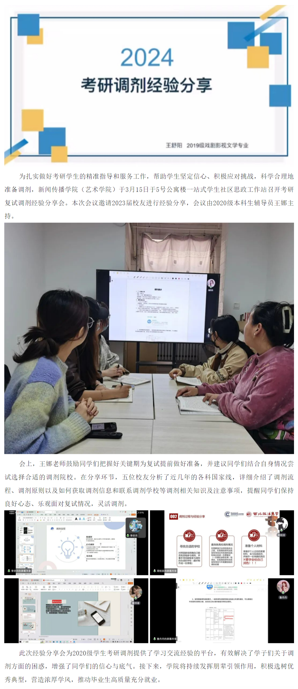 “研”途有我|做爱视频 2020级开展考研复试调剂经验分享会