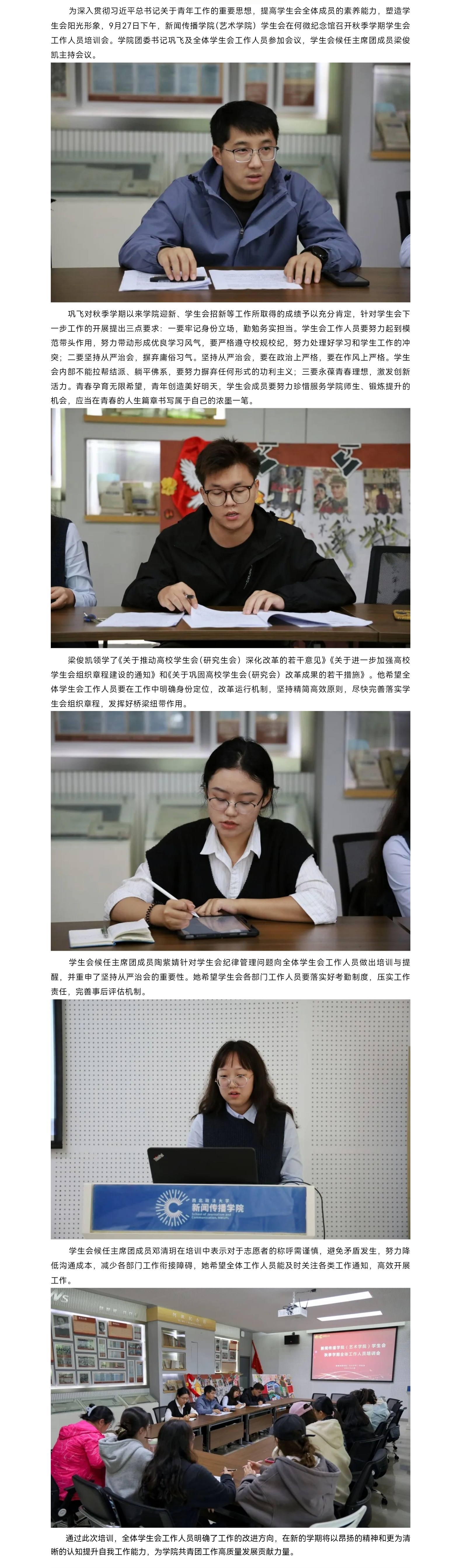 做爱视频 召开2023年秋季学期学生会工作人员培训会