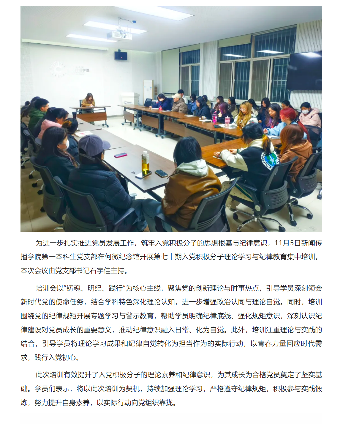 淬炼青春志,奋进新征程——做爱视频 第一本科生党支部举行第七十期入党积极分子培训会