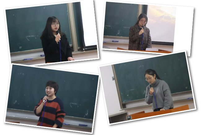随后,四位读书活动学生代表分别分享了自己在读书交流过程中的感受。2016级程一诺同学分享了自己的读书感受,她认为书籍除了传承文明之外也是一种生活的记忆,我们应该多读书,用知识取悦自己。她也提出,电子书一定不会全面取代实体书,书本能够带给人心灵的安静与涵养的沉淀。紧接着,2016级刘琼同学在发言中提到,读书是从另一个自我中寻找慰藉、汲取力量。她从《解忧杂货店》的阅读心得讲到了书籍带给人的温暖和力量——在这个世界上,我们并不是踽踽独行,总有人参与着我们的幸福。我们要在与书相伴而行的过程中,习惯读书、爱上读书。接下来,2017级马晓霞同学引用古今中外的名人名言阐述了读书的妙处。她认为,广泛的阅读有助于我们形成良好的道德品质,培养健全的人格,培养收集和处理信息的能力、思维能力和审美能力。她呼吁大家一起行动起来,多读书、好读书、读好书、会读书。而读书的意义在于什么?在17级赵徐沁萌同学看来,阅读所带来的积累能让你成为一个有趣的人。《平凡的世界》开启了她徜徉书海的大门,读书带给她的满足感填充了她的思想与灵魂。她说道:“读书习惯的养成不是一朝一夕,阅读所积累知识一定不会辜负你。”