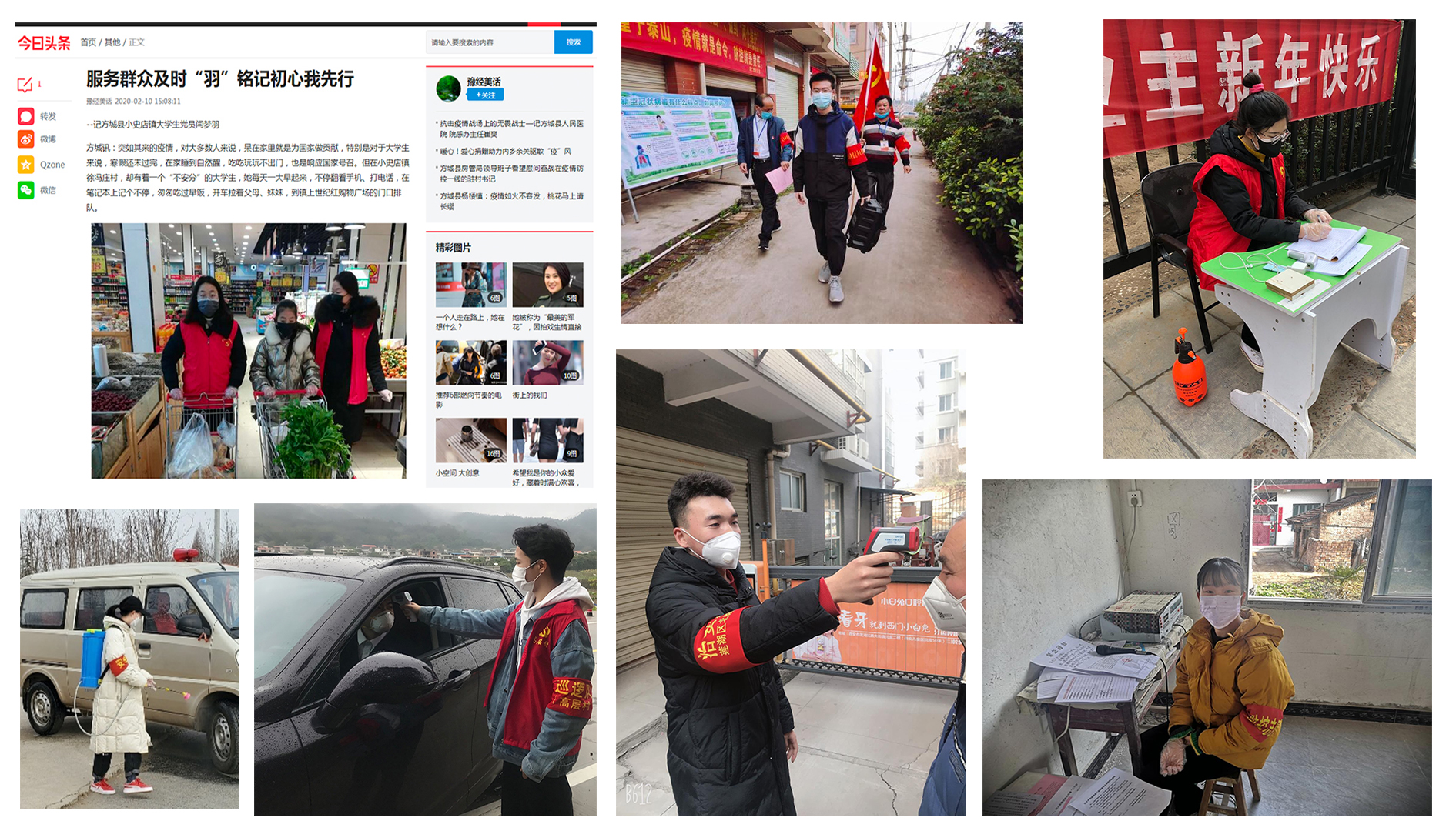 学院青年学子积极投身社区疫情防控,截至3月25日,共有37名先进典型开展志愿服务工作,其中25名参与志愿服务的新传青年接受采访,他们将政治信仰、自律品格、知性风尚与青春抱负融入日常生活,体现出青年榜样的力量。同时,闫梦羽、刘宇林等同学的事迹,受到人民日报、陕西教育网、北流市融媒体中心等多家媒体报道。2月27日以来,地方社区党支部陆续向学院寄来感谢信,感谢同学们助力社区疫情防控,感谢学校、学院培养青年人的担当和对社会的责任感。