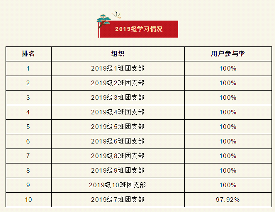 在上一期“青年大学习”网上主题团课的学习中,2019级1、2、3、4、5、6、8、9、10班团支部位居榜首。