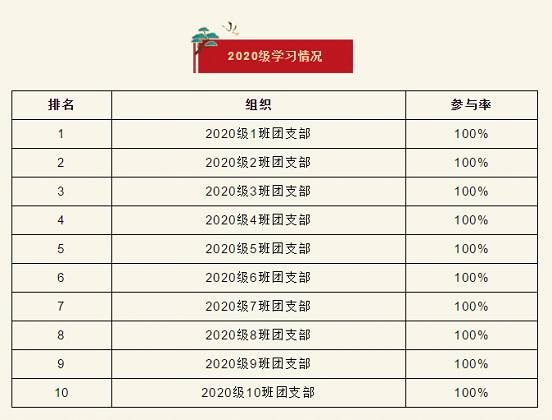 在上一期“青年大学习”网上主题团课的学习中,2020级所有团支部全部完成!