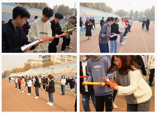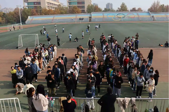 1110日中午,阳光正好,冬风不燥。我院20201班、2班、3班、6班、7班、8班同学们在操场准时集合,在我院团委书记、2020级辅导员王亮老师,2020级辅导员王娜老师的主持下,本次素拓活动正式开始。