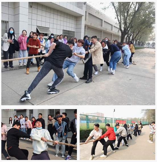 拔河比赛率先开展。哨音一响,同学们便铆足了劲儿,抱着必胜的决心投入“战斗”。围观的同学们也高声为本班同学呐喊助威,场面一度十分热烈。