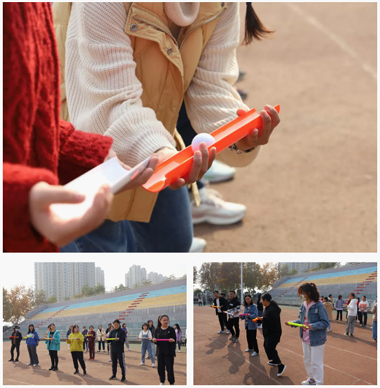 在欢呼声中,运乒乓球比赛也开始了,选手们捧着彩色的接力板,一个接一个的运输,乒乓球在一次次接力中旋转跳跃,最终成功到达终点,第一天的素拓活动接近尾声。