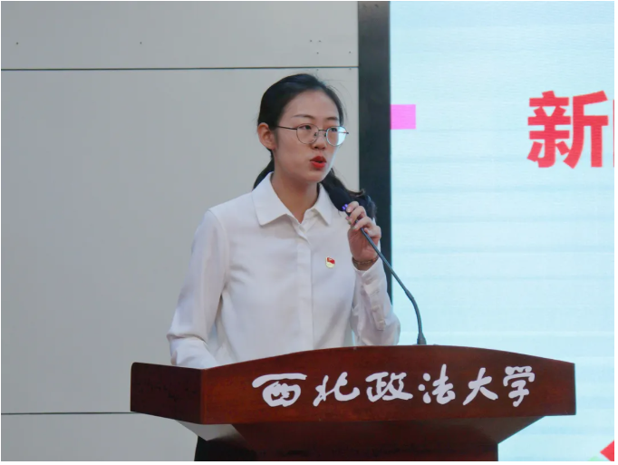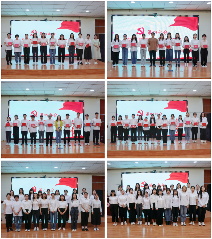 随后,我院张莉卓老师、巩飞老师、王娜老师、刘璇老师为党员同志赠送政治生日贺卡。屈宇航、高铭泽、邱秋、郝瑞琪、梁婷、高歌、张荣、唐丽丽、刘阳、杜丽君十位党员代表为新发展的党员佩戴党徽。