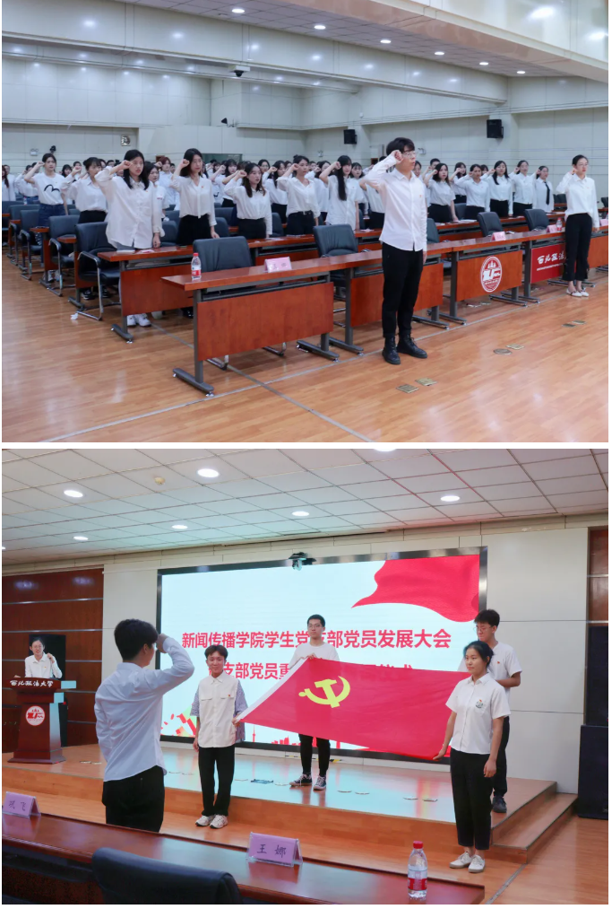 6月25日,我院学生党支部在长安校区图书馆一楼报告厅召开学生党支部党员发展大会暨支部党员重温入党誓词仪式,讨论接收马云飞、苏妍等58名同志为预备党员的事项。我院党委副书记秦音和全体辅导员出席会议,学生党支部书记刘璇主持会议。