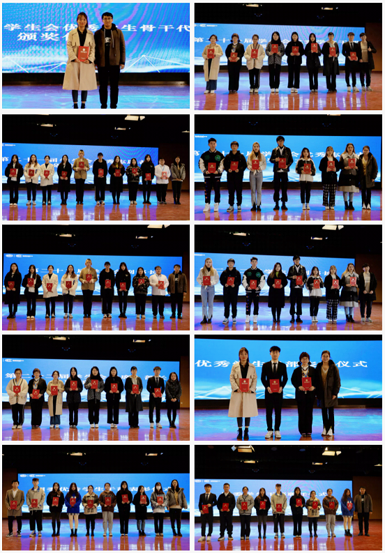 发言结束后,学院老师为优秀团学骨干、优秀学生干部和优秀志愿者颁发证书。为新一届团委、学生会成员颁发聘书。