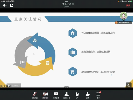 在讲解环节,崔梁凡向大家分析了近年来高校毕业生就业总体形势,随着全国高校毕业生数量的逐年增多,毕业生就业形势呈现出数量多、结构性矛盾突出、“有业不就”和“无业可就”现象并存等状况,他通过数据向大家讲解了学院毕业生考研升学、就业创业情况,介绍了我校就业政策和毕业生就业流程,为大家进行职业规划指导。围绕毕业生在求职创业过程中的重点问题,引导大家树立合理就业期望、合理规划考研与就业、合理安排公考与求职,切实提升个人能力,珍惜应届生身份、积极主动抓住校招黄金期、积极参加各类招考招聘活动,以积极、健康、理性的状态积极迎接就业挑战。
