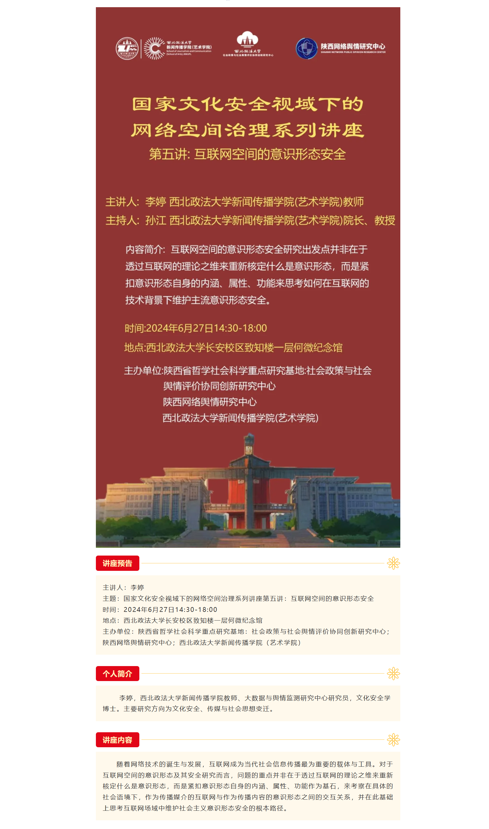 讲座预告 | 国家文化安全视域下的网络空间治理系列讲座第五讲:互联网空间的意识形态安全