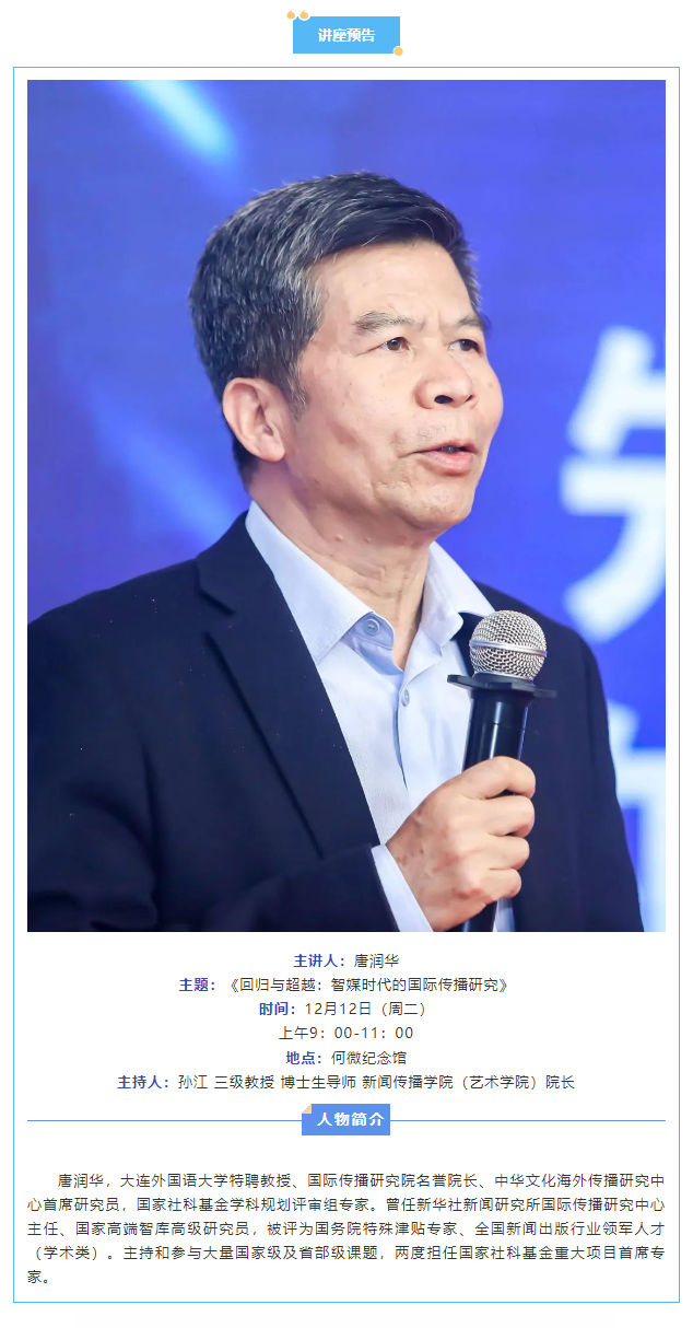讲座预告 | 唐润华:《回归与超越:智媒时代的国际传播研究》