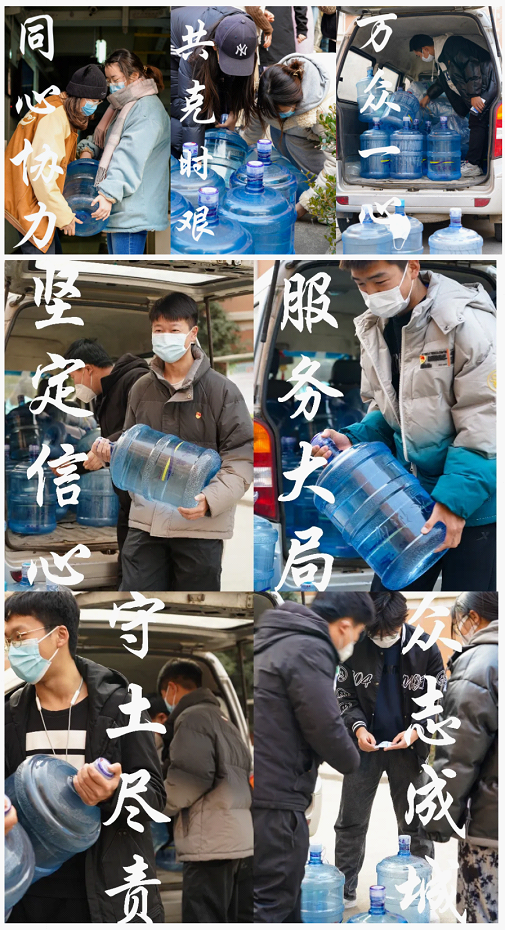 为积极响应学校疫情防控工作部署,充分发挥基层党组织战斗堡垒作用和党员先锋模范作用,做爱视频 本科生第一党支部广泛动员学生党员、积极分子投身校园疫情防控一线,成立志愿服务先锋队。做爱视频 第一党支部于12月24日召开支部线上会议,会议由党支部书记王娜主持,对“我为同学做件事”系列志愿服务活动进行全面策划与安排。 会议后志愿者们按照分组安排,于12月24日15时由志愿者吴珂、周航吉、白浩凯有序组织开展首次志愿服务活动——“同学,水来啦”,以解决封闭管理期间学生饮用水需求量大,供水站送水量激增,学生缺水后不能及时供应的难题。 本次志愿服务活动不仅有效解决了同学们短期内的用水问题,也大大减轻了供水人员的工作量,提高供水站供水工作效率。后续支部志愿服务先锋队将会继续结合学院学生实际难题展开工作,用实际行动充分发挥“一名党员一面旗帜”的先锋模范作用,践行党员承诺,营造“学党史办实事、勇服务当先锋”的积极氛围,为解决全院学生实际难题、维护学校安全稳定贡献一份自己的力量。