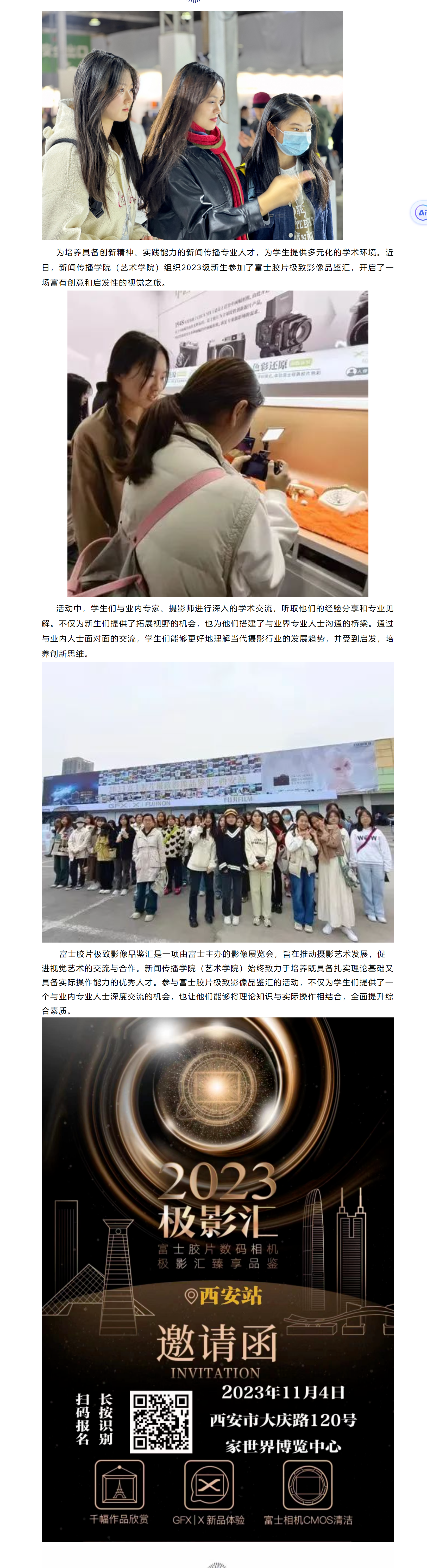做爱视频 2023级新生参观富士胶片极致影像品鉴汇