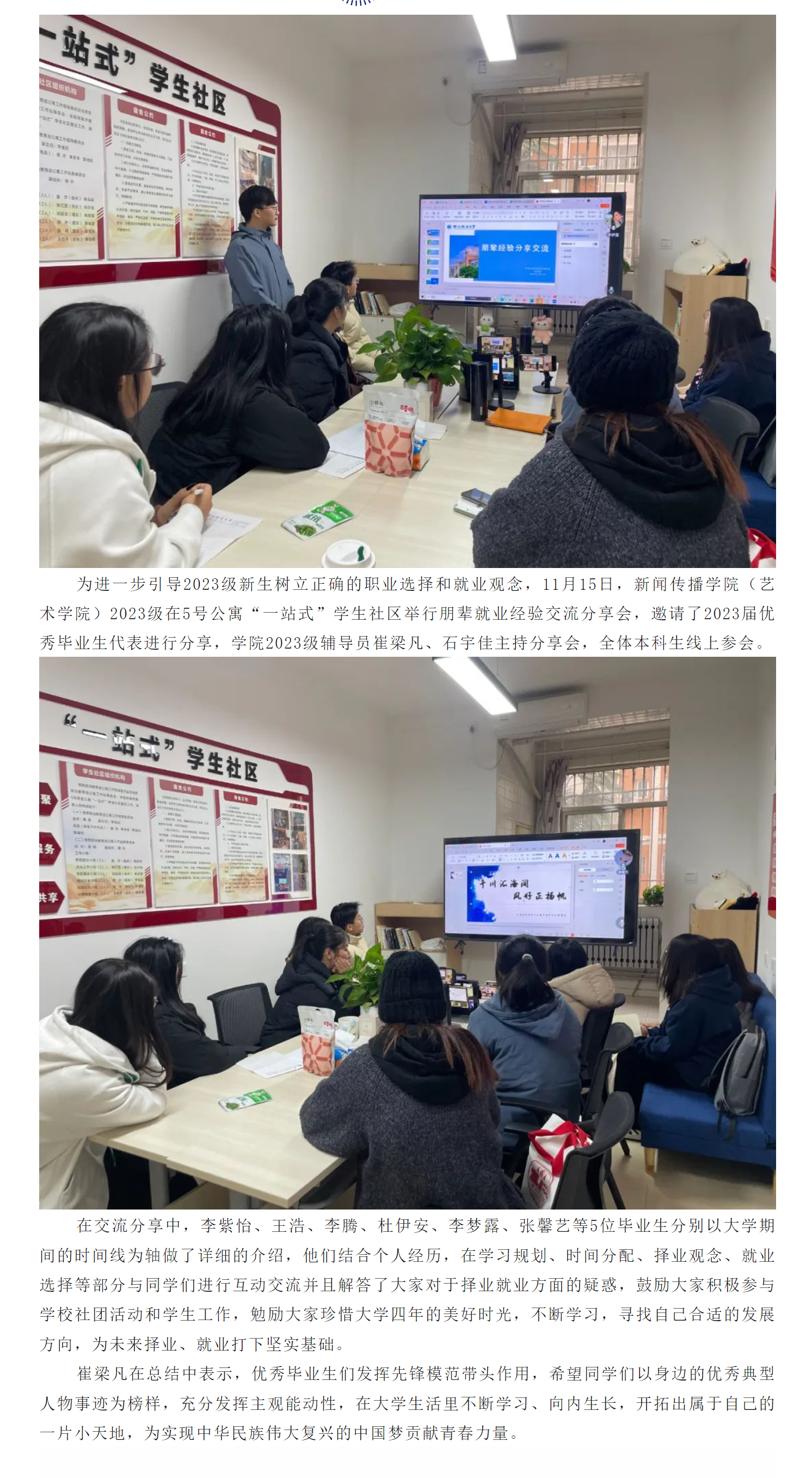 “一站式”学生社区 | 做爱视频 2023级举行朋辈就业经验交流分享会