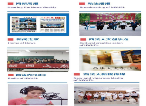 学院创办《闻新周报》《新闻之家》《新语》《阅思集》《政法播报》《西法大radio》《西法大新锐传媒》等学生媒体,已覆盖报纸、杂志、音频、视频与新媒体等多种媒体类型。2016年,各学生媒体的新媒体账号总推文数逾千条,基本形成了以学生为核心、专业教师辅助指导的课外实践活动模式。