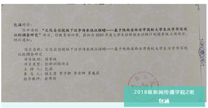 在采访项目负责人——2018级广播电视学的包涵时,我们了解到,这个项目的提出,与国家政策有关系:党的十七届六中全会提出了文化强国的理念,为配合该理念,国家文化部、教育部提出相关政策。包涵团队成员结合身边情况,发现在当代网络信息化的冲击下,越来越多的大学生陷入了书写能力日益退化的窘境,“提笔忘字”的现象频繁出现。