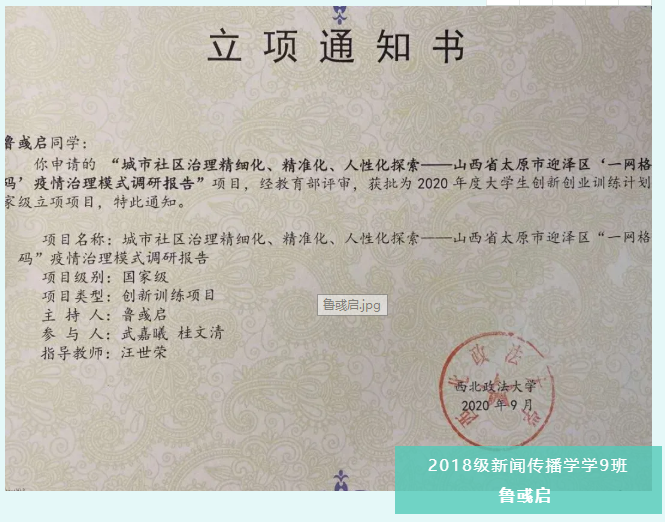 2020年,在汪世荣老师的指导下,与武嘉曦同学(公安学院)、桂文清同学(做爱视频 )经过多次竞赛合作后,再次共同参与调研计划、立项书撰写。