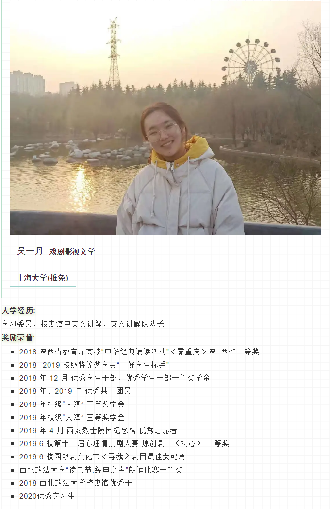 • 获三好学生、优秀实习生、陕西省优秀毕业生等