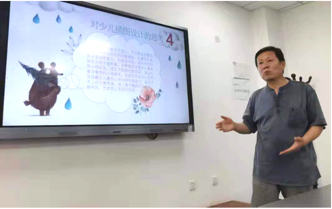 针对我国近年来少儿图书的插画设计这一话题,曹老师从色彩、形象、材质等方面进行了详细的讲解。曹老师指出,在设计类插画中少儿插画是一大重点,不同年龄段的少儿绘本要求各不相同,了解孩子们的心理活动,激发少儿的创新思维和想象力是少儿插画设计师的一个重要任务。少儿图书的插画设计必须符合少儿的审美心理,细分少儿年龄层次,注重细节表达。