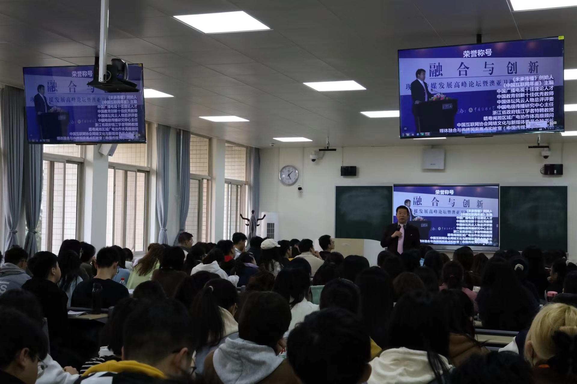 举办《双师大讲堂》第二讲之5G时代的科技创新与学科融合线下讲座。讲座在我校致知楼302教室举办,本次讲座由北京邮电大学曾静平教授担任主讲人,我院学生代表与会聆听,我院陈琦教授担任主持人兼点评人。曾静平首先梳理了1G到5G时代的变迁历程。详细介绍了从1G到5G时代发展过程中人们生活的变化,并结合了5G赋能的三大应用场景,向同学们展示了国家科技创新整体实力以及智能传播技术支撑体系,强调了智能传播发展对人类的重要意义。