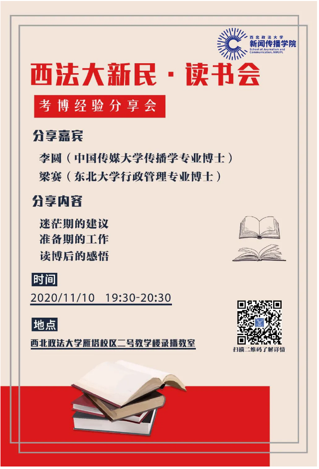 主题:对话新传榜样 | 西法大新民•读书会——考博经验专场