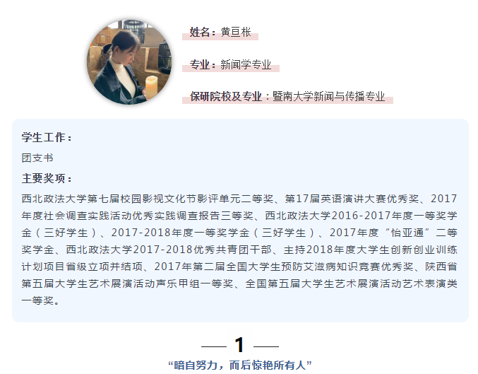 编者按:大学期间在书山学海间挥洒的汗水在大四凝结成一颗珍珠——推免。作为大学期间的一次重要蜕变,推免背后是一个人或一群人脚踏实地又仰望星空的奋斗史。他们用“坚定初心,勇敢前行”的态度走出了属于自己的推免之路。新闻之家即日起推出“新传青年说 · 推免路上”专栏,梳理我院2017级学生推免路上的奋斗故事以飨读者。我们一起记录成长,学习榜样,交流经验,彰显新时代新传青年的青春力量。