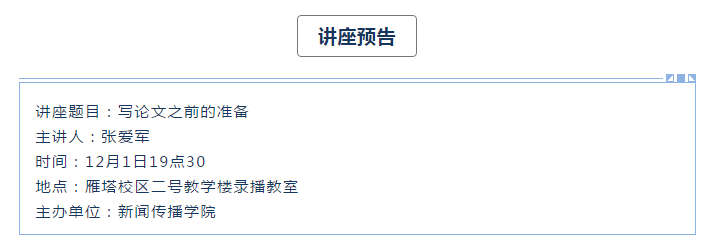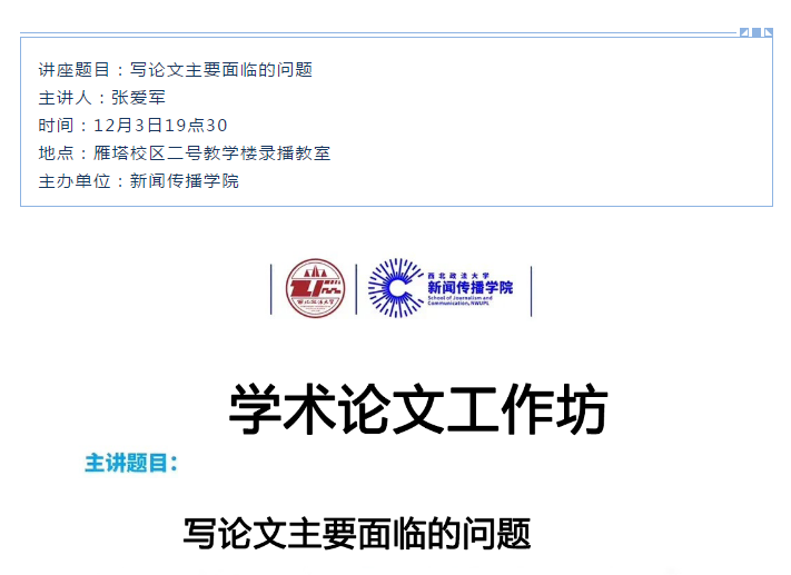 工欲善其事, 必先利其器。为了同学们在未来学术的道路上一马平川,乘风破浪,我院的博士生导师张爱军教授将举办学术论文工作坊,解答大家在论文写作上的困惑和疑问、指导同学们写论文之前的准备工作以及讲述同学们在写论文时主要面临的问题。