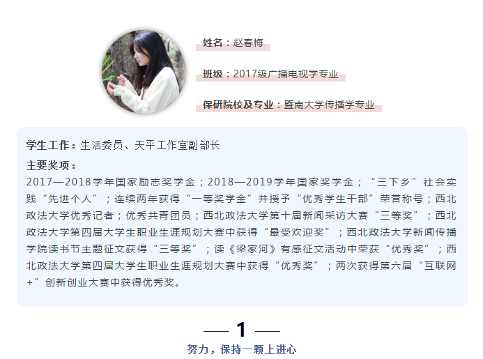 编者按:大学期间在书山学海间挥洒的汗水在大四凝结成一颗珍珠——推免。作为大学期间的一次重要蜕变,推免背后是一个人或一群人脚踏实地又仰望星空的奋斗史。他们用“坚定初心,勇敢前行”的态度走出了属于自己的推免之路。新闻之家即日起推出“新传青年说 · 推免路上”专栏,梳理我院2017级学生推免路上的奋斗故事以飨读者。我们一起记录成长,学习榜样,交流经验,彰显新时代新传青年的青春力量。