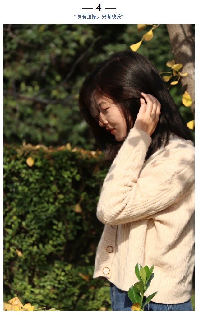 赵春梅说:“志愿活动、兴趣爱好以及旅游计划一样都没落下,所以我觉得我的大学生活没有遗憾,有的都是快乐和收获。”、