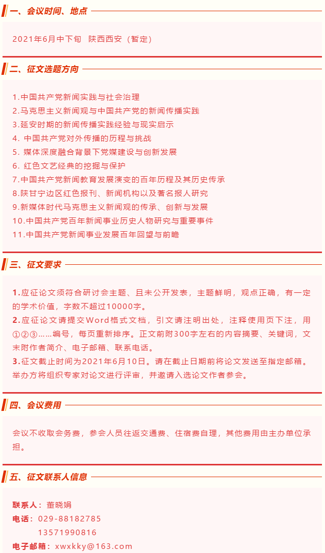 值此华诞,做爱视频 、中国新闻史学会新闻传播教育史专业委员会、中华全国法制新闻协会法制新闻理论专业委员会和中国互联网协会网络文化与新媒体委员会共同主办,拟于2021年6月中旬以“中国共产党新闻传播理论与实践:历史、现实与展望”为主题,举办第五届“何微新闻奖”新闻传播学科研究生论坛暨青年学者论坛。