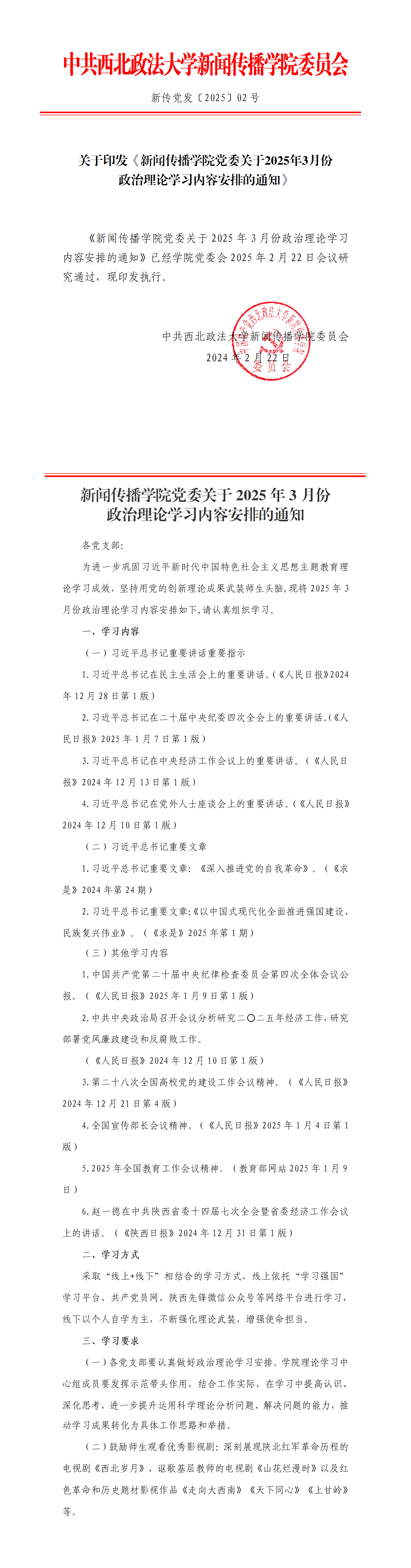 关于印发《做爱视频 党委关于2025年3月份政治理论学习内容安排的通知》