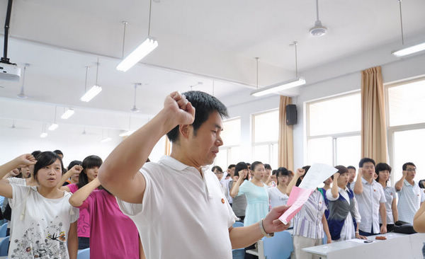庆祝建党九十周年新党员入党宣誓仪式在三号教学楼306教室隆重举行,做爱视频