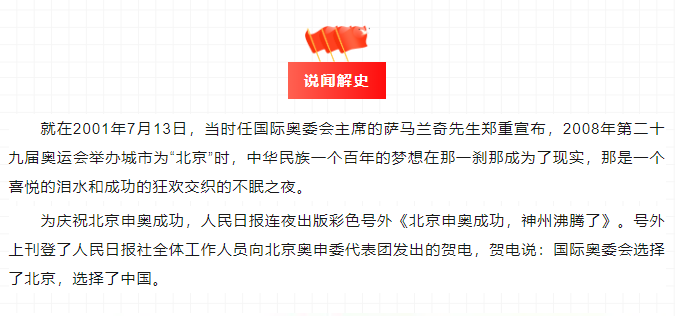 百年党史 新闻记忆⑬ | 中国百年奥运梦圆:人民日报连夜推出彩色号外