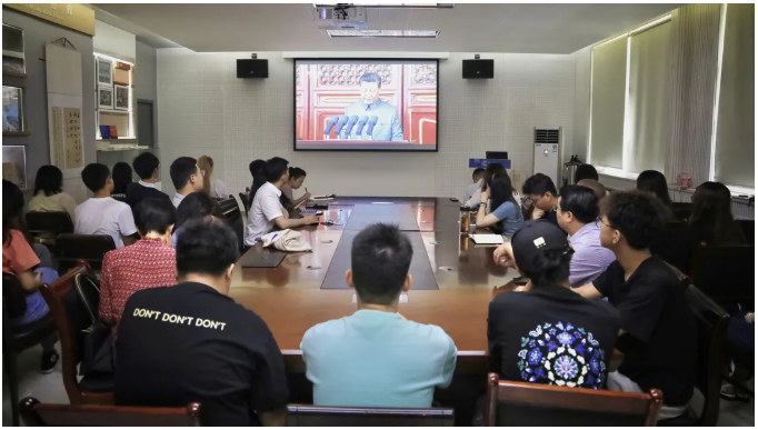 观看结束后,老师和同学心中热血澎湃,畅谈心得看法。