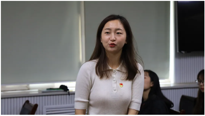 罗一婷同学说到,作为广大青年中一员的我们,应该积极学习党史,感悟红色青春。能做事的做事,能发声的发声。有一分热,发一分光。让我们可以骄傲的喊出“请党放心,强国有我!”