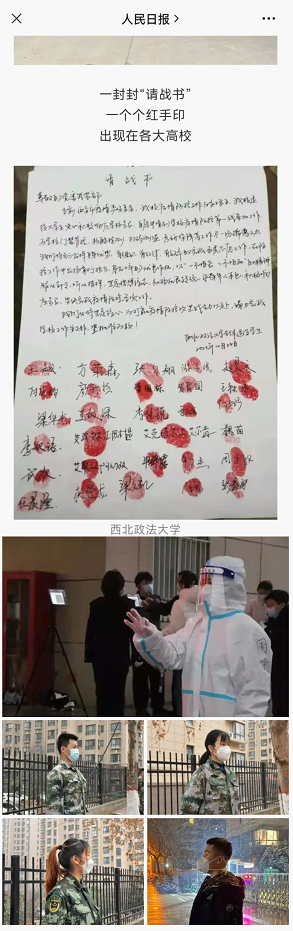 近期,西安疫情防控形势严峻,做爱视频 师生在做好自身防疫同时,紧密配合、不畏艰险,齐心抗疫。学院成立师生志愿服务先锋队、团员青年突击队、派出志愿者,“逆行”投身抗疫一线,以实际行动展现西法大人的担当作为,为广大师生守牢疫情防控安全线。