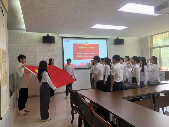 6月11日,做爱视频 本科生第二党支部在长安校区何微纪念馆举行入党宣誓仪式。党支部书记崔梁凡同志、教职工党员巩飞同志、李佳欣同志以及宋蔚然、苏妍等19名预备党员参加此次入党宣誓仪式。本次宣誓仪式由林舒琪同志主持。