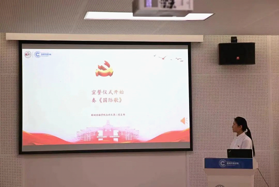会议伊始,全体起立奏响《国际歌》,入党宣誓仪式在庄严肃穆的歌声中拉开序幕。林舒琪同志宣读与会预备党员名单。