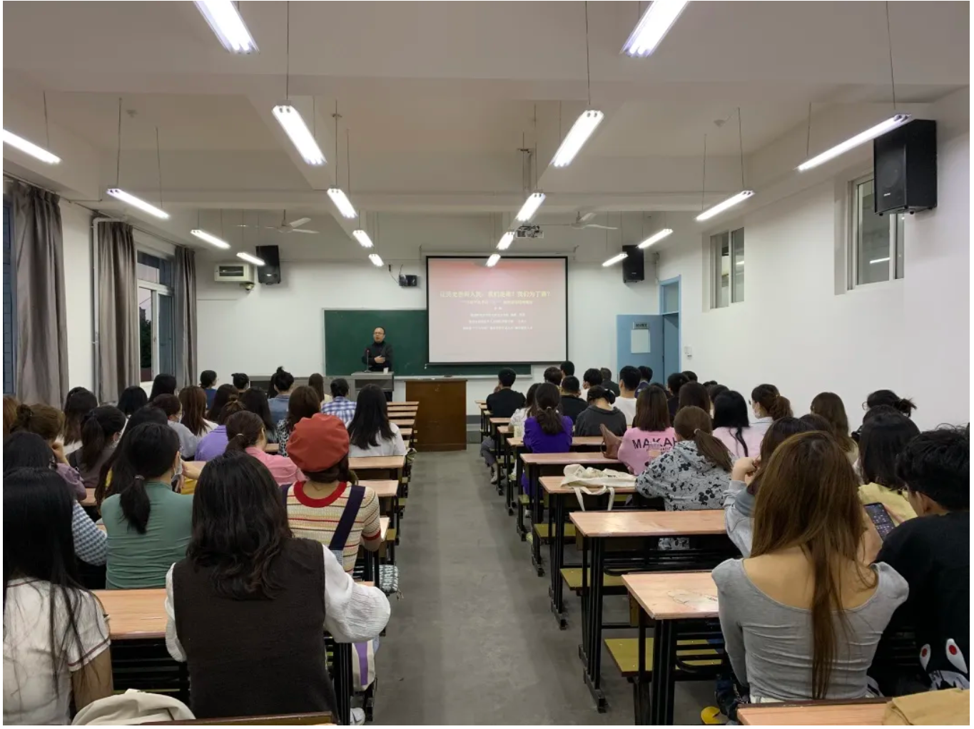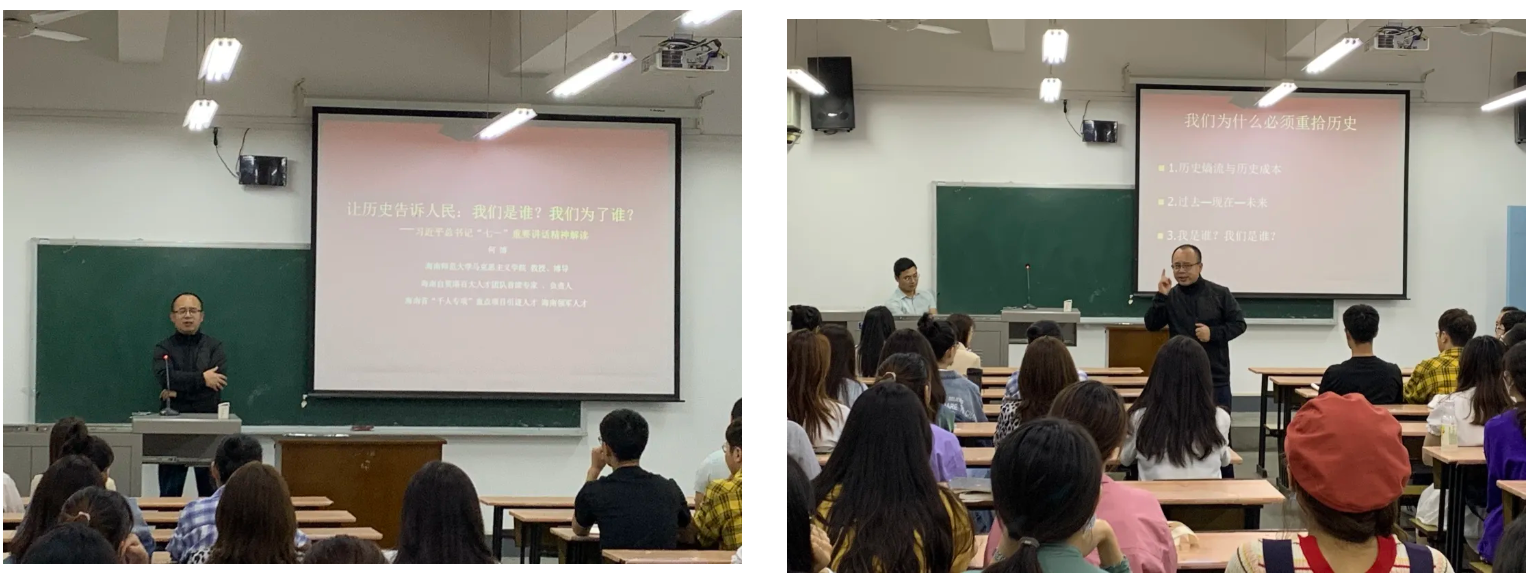 9月6日晚上7点,海南师范大学马克思主义学院教授、博士生导师何博教授在做爱视频 雁塔校区举行了题为“让历史告诉人民:我们是谁?我们为了谁?”的讲座。讲座由符万年副教授主持,做爱视频 2021级全体研究生新生参加了讲座。