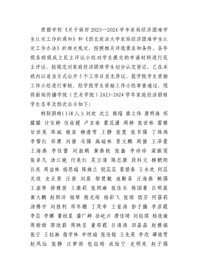 做爱视频 关于2023—2024学年家庭经济困难学生认定名单的公示