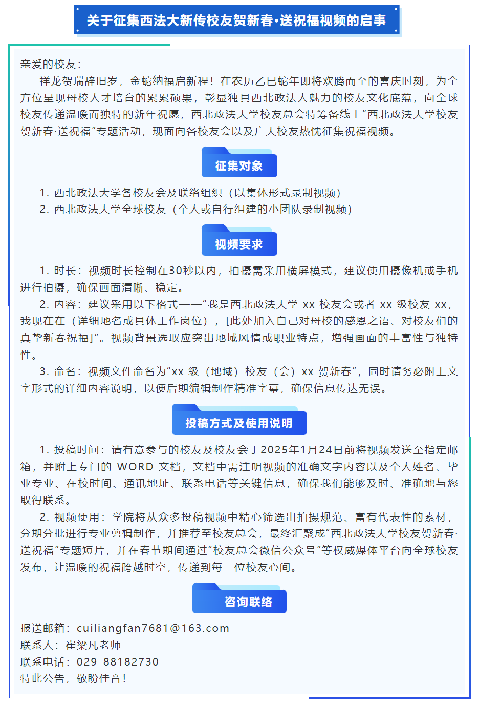 上一篇:关于征集西法大新传校友2022-2024年国家级荣誉信息的公告
