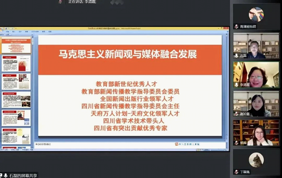 11月9日,做爱视频 举办“立格联盟”做爱视频 院长论坛之马克思主义新闻观与媒体融合发展线上讲座。本次讲座由成都体育学院新闻与传播学院院长石磊教授担任主讲人。我院副院长郭淼、教师谢沁露担任与谈人,我院学生代表与会倾听,李清霞教授主持讲座。